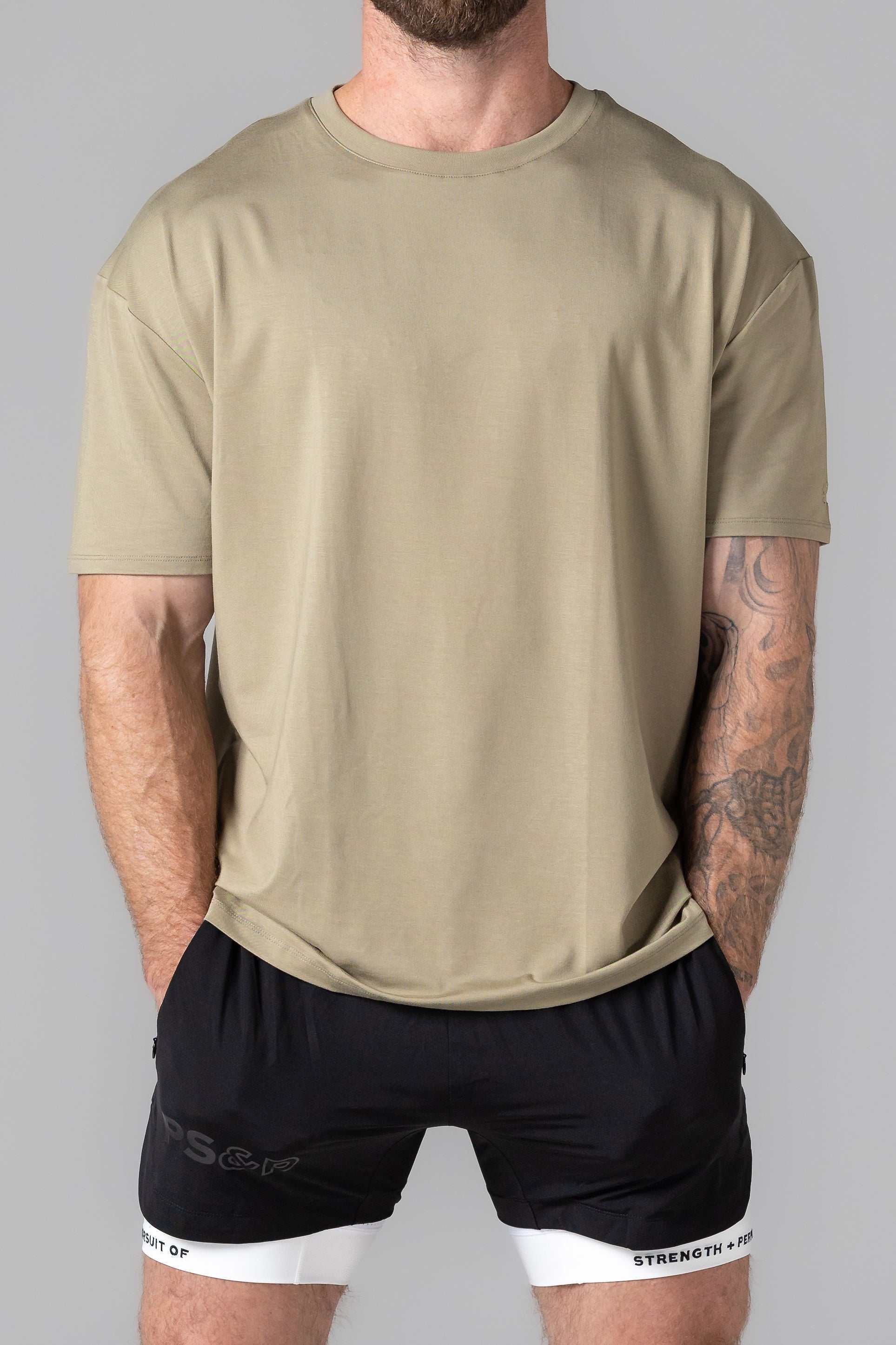The newest addition to our street fits, the Essential Box Tee in Tan499. Constructed from our premium PurMA fabric for the highest standards of quality, with a ribbed collar, a subtle embroidered logo and an engraved badge. Cut in our signature box fit for superior comfort.